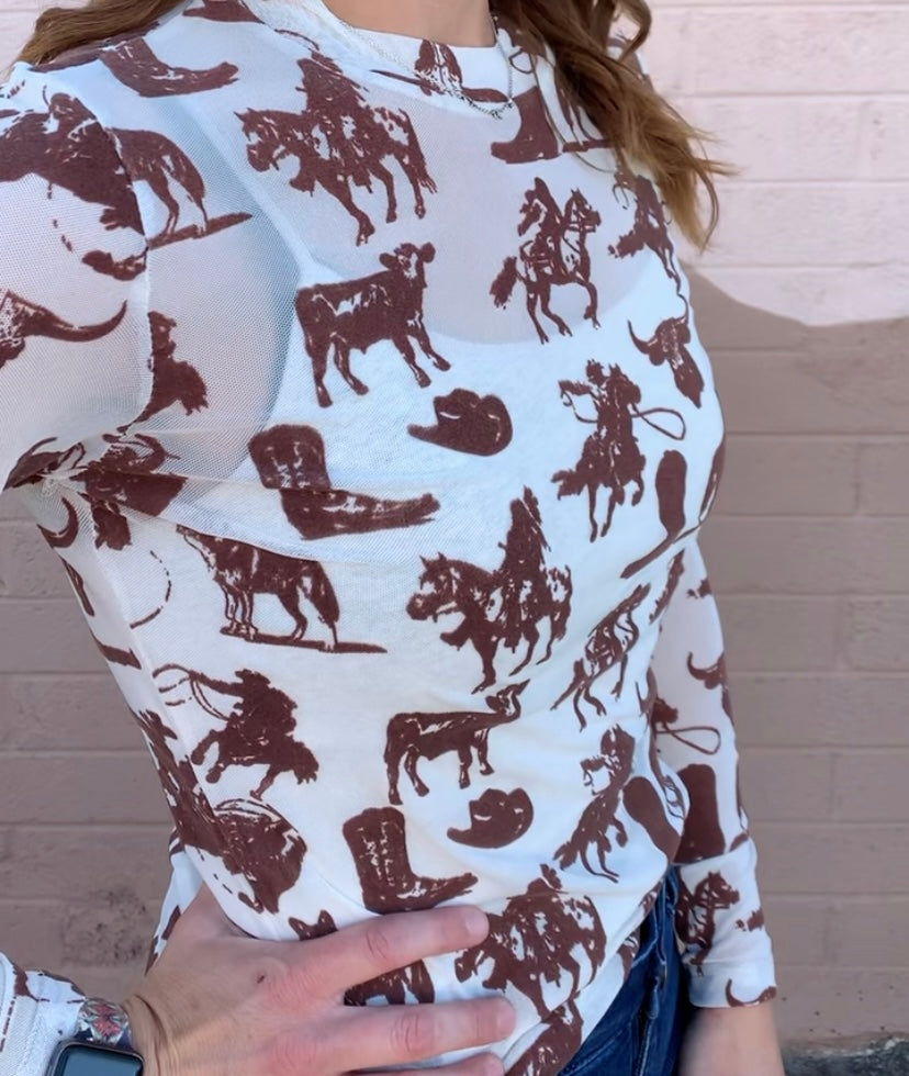 Western mesh tops are to die for! The most unique printed top with 3D texture. Its sheer fabric makes it perfect for layering under a vest, jacket or tee. It has just the right amount of stretch and adds the perfect western touch to any outfit while keeping it lightweight and breathable!