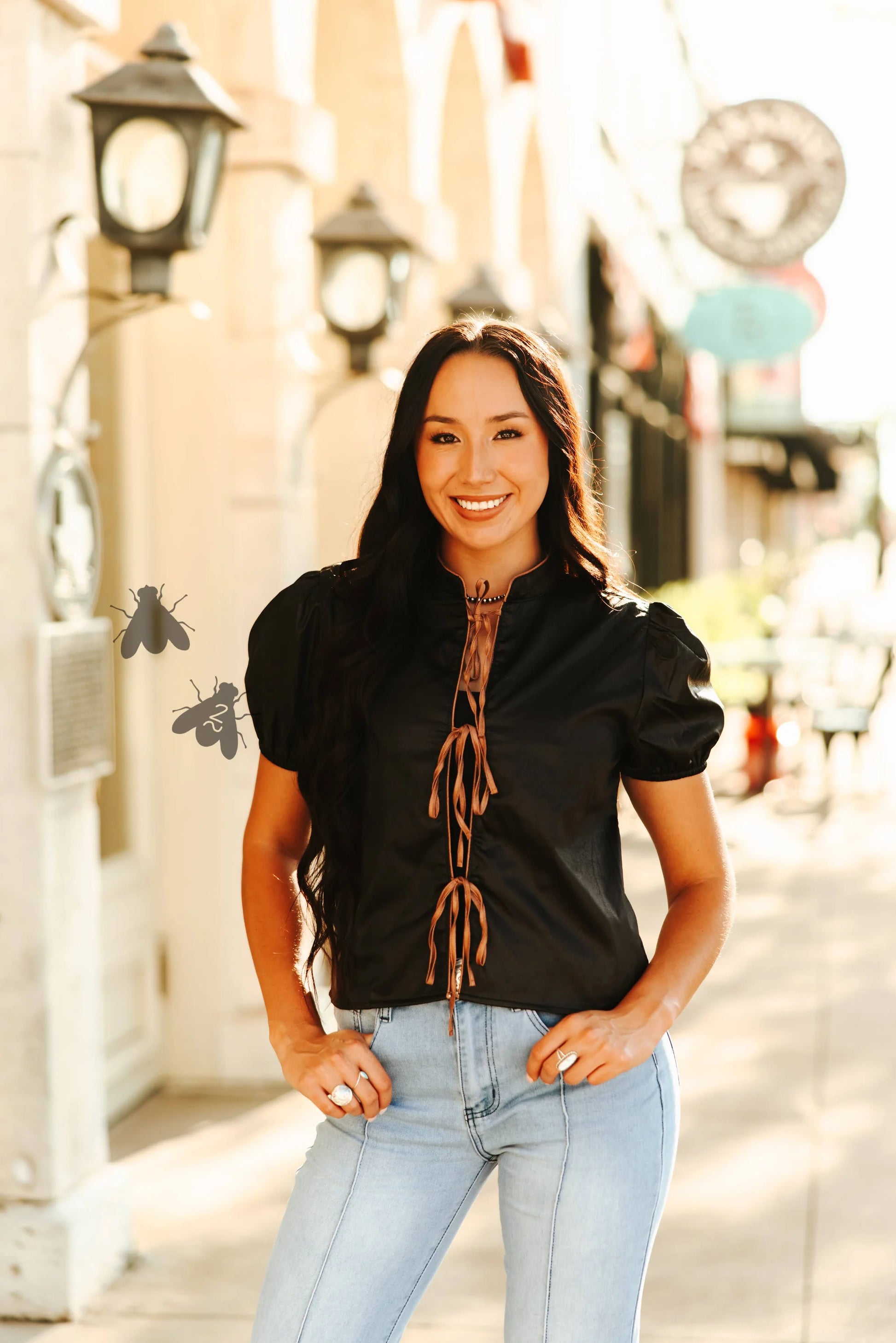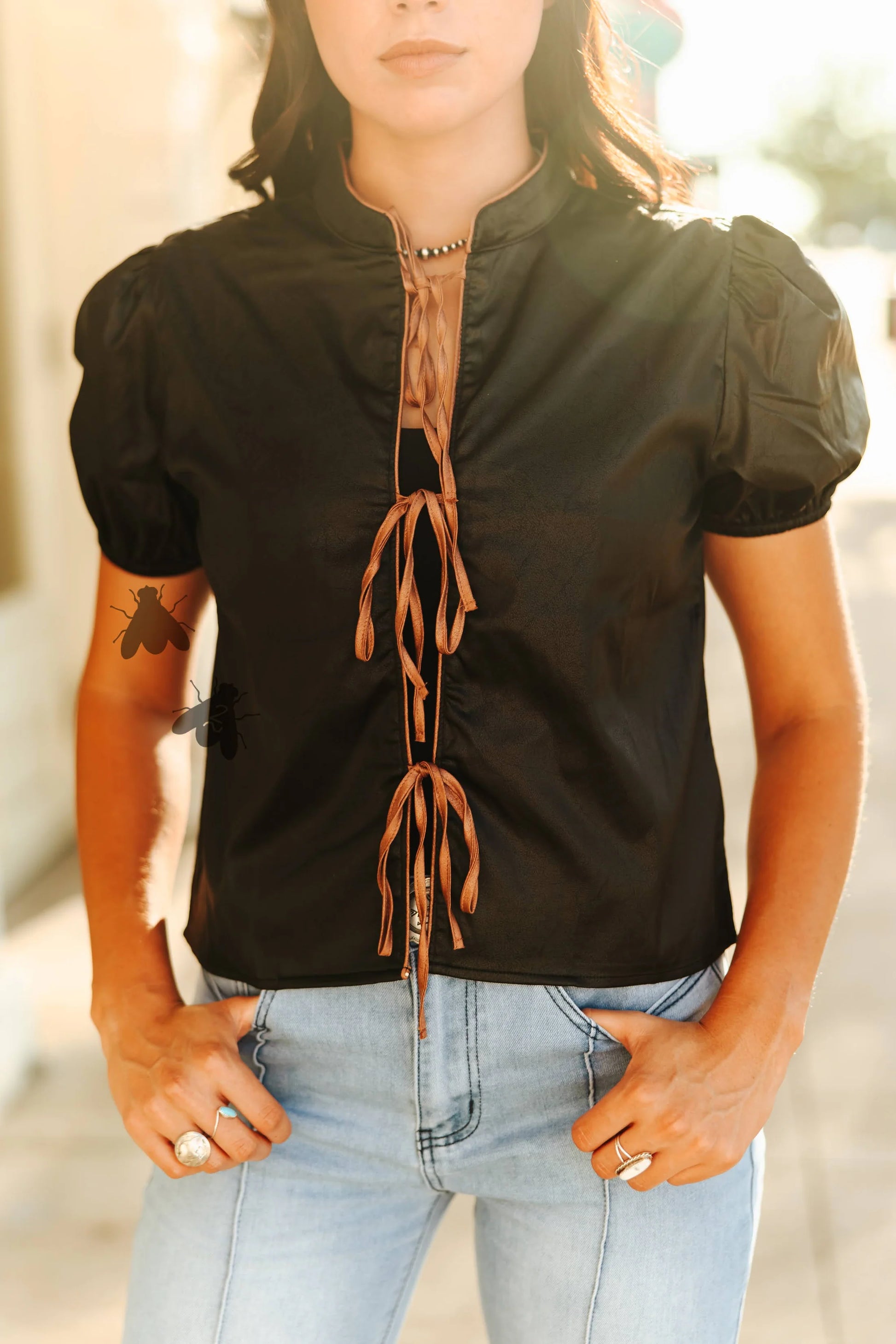 Our BEST SELLING Top of all time!! Back in stock one more time! Made from the prettiest satin material with ties in the front - BUT the classic fit of this top is what makes it perfection! Pair it with a matching or contrasting cami underneath.