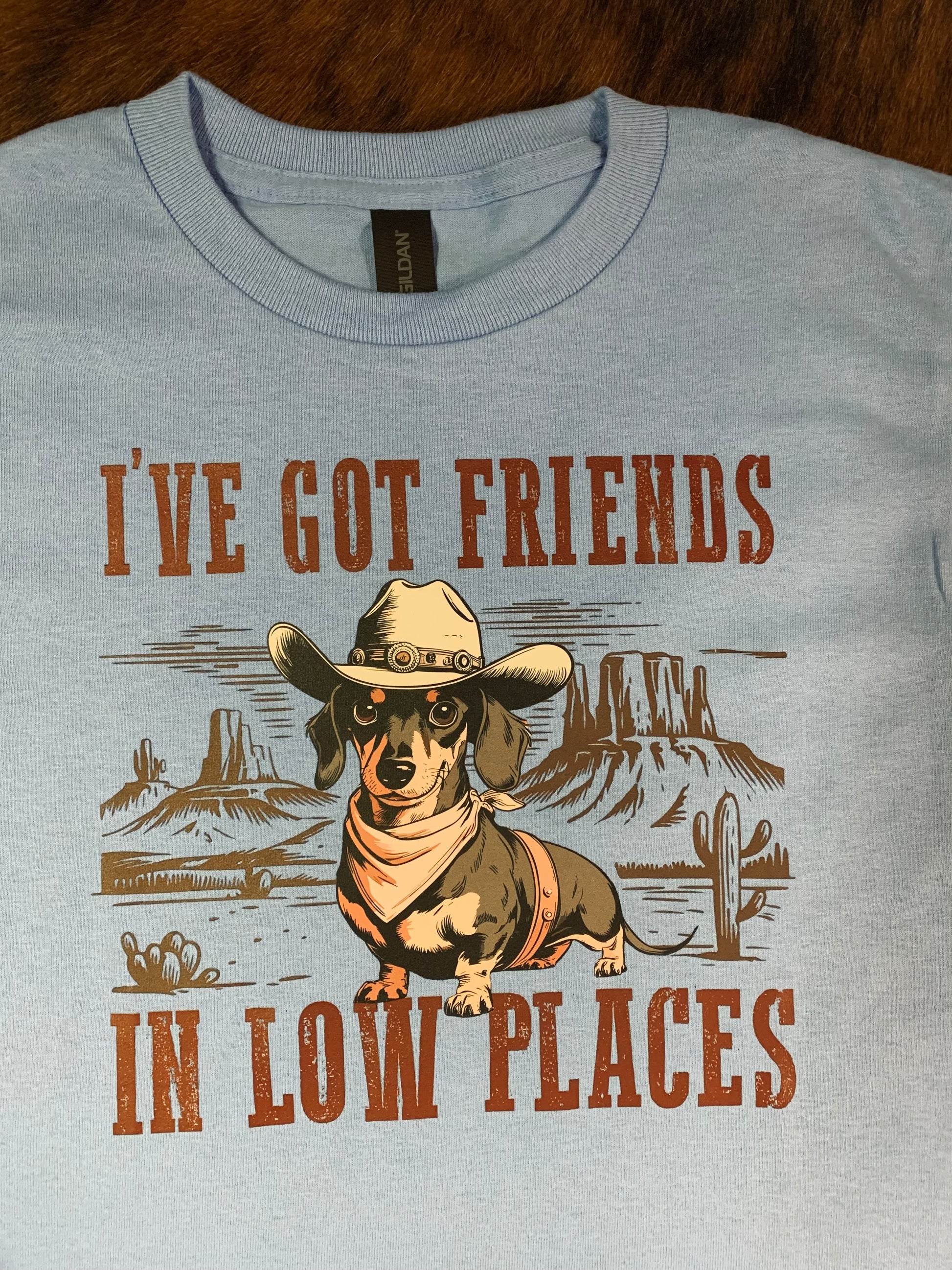 Cutest little weenie pup in a cowboy hat graphic on a soft carolina blue Tee. True to size fit. Will shrink slightly after washing & drying.