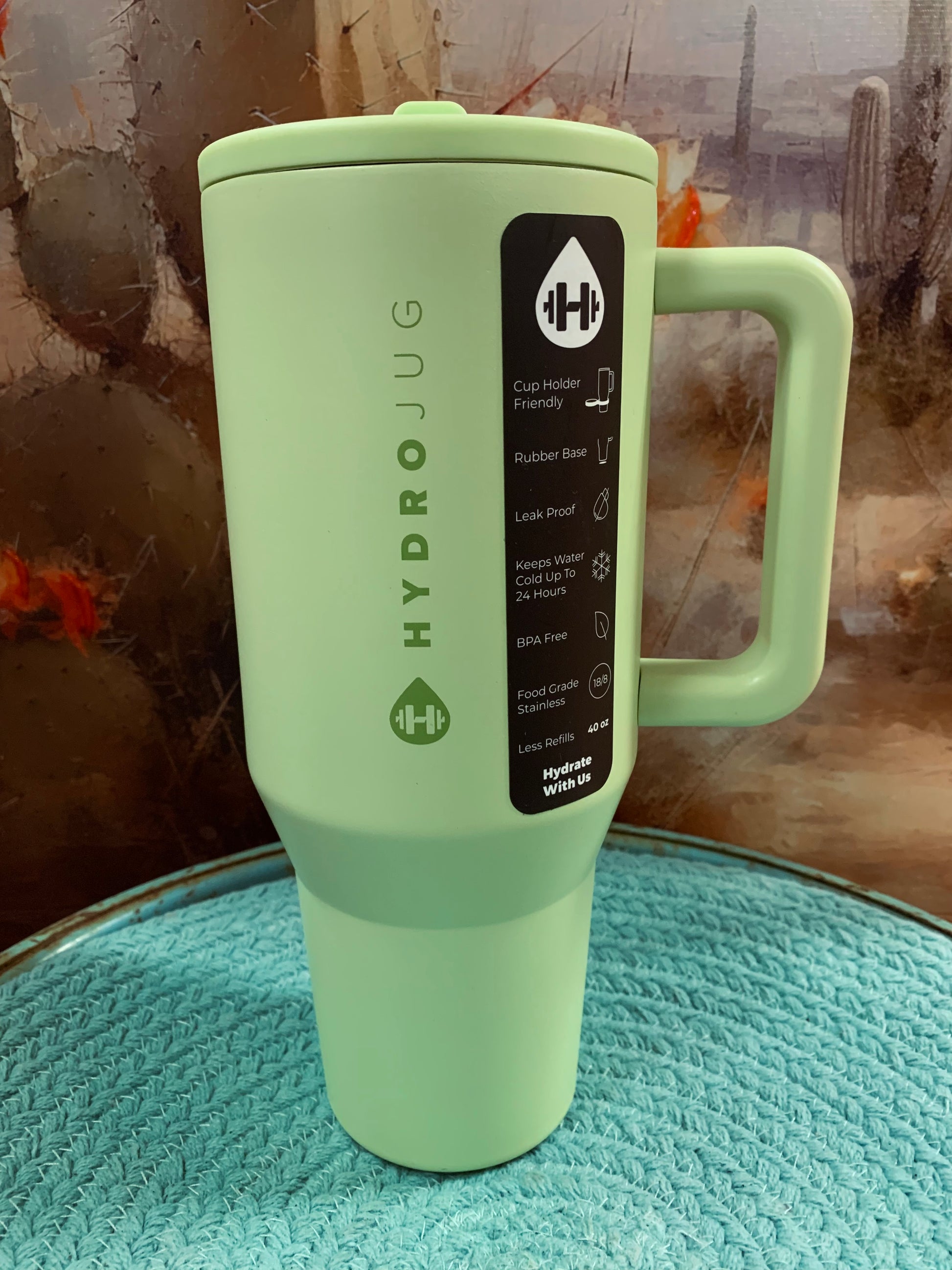 A definite NEED! The coolest one of a kind laser engraved Steer Skull & Bootstitch Lime Green Hydrojug Tumbler with flip straw and handle. Perfection!